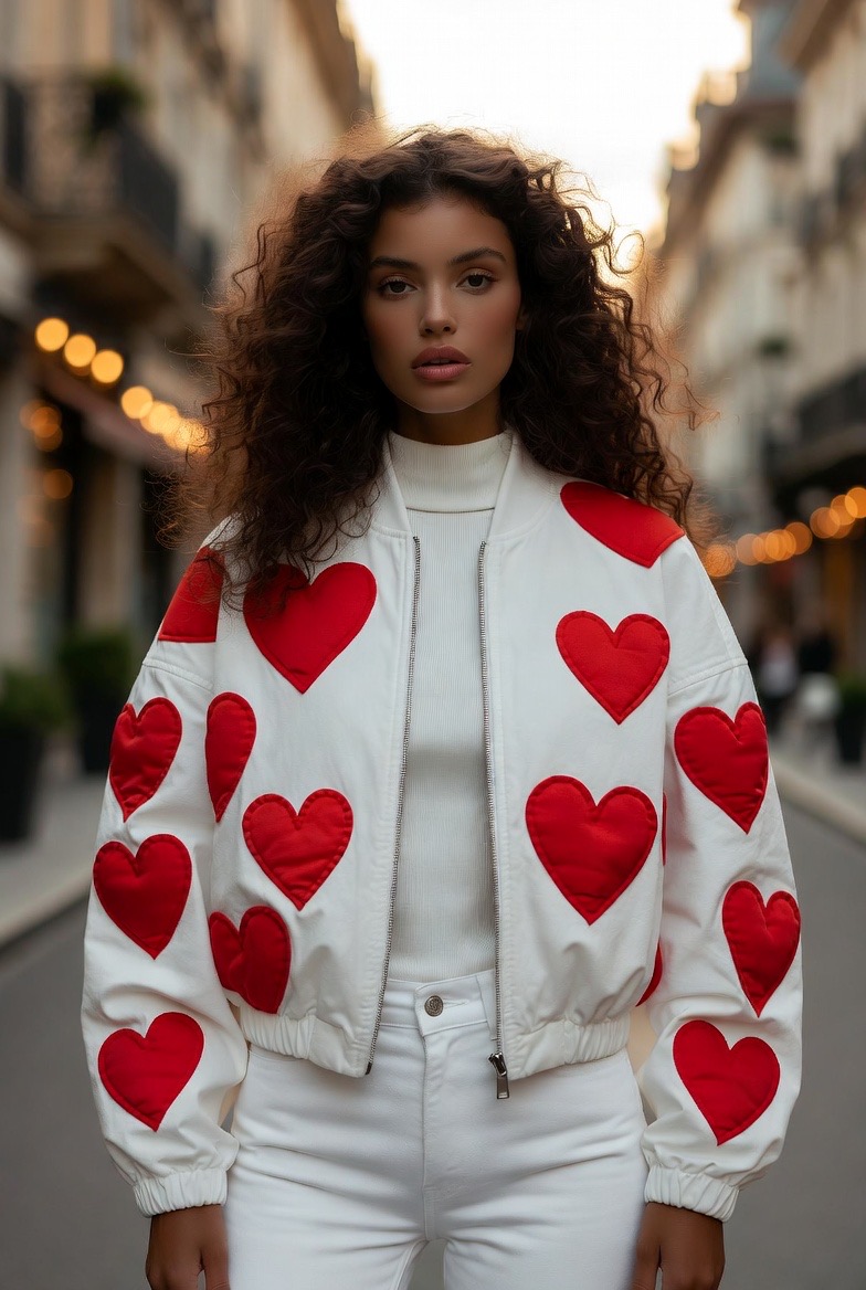 თეთრი ბომბერი წითელი გულებით