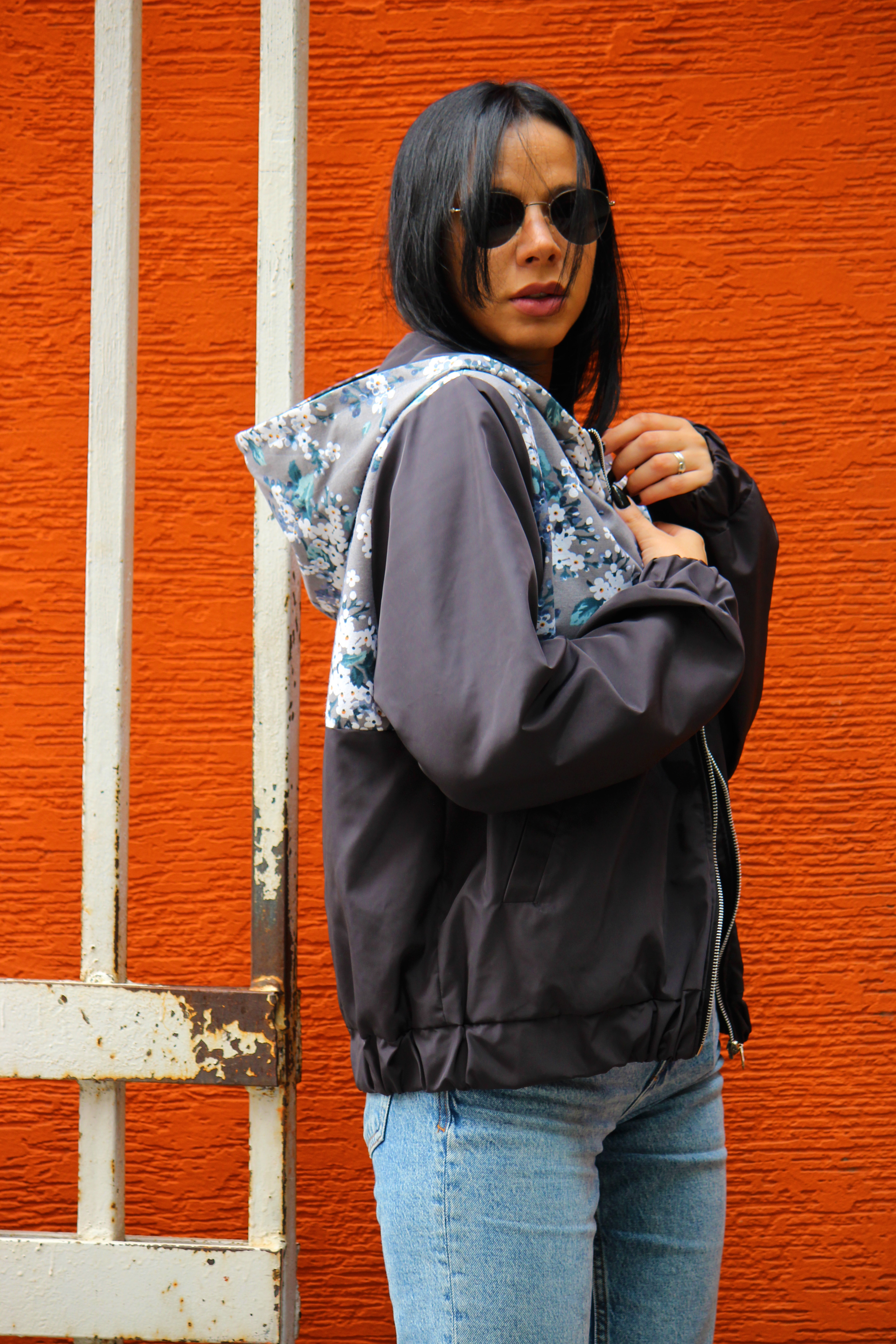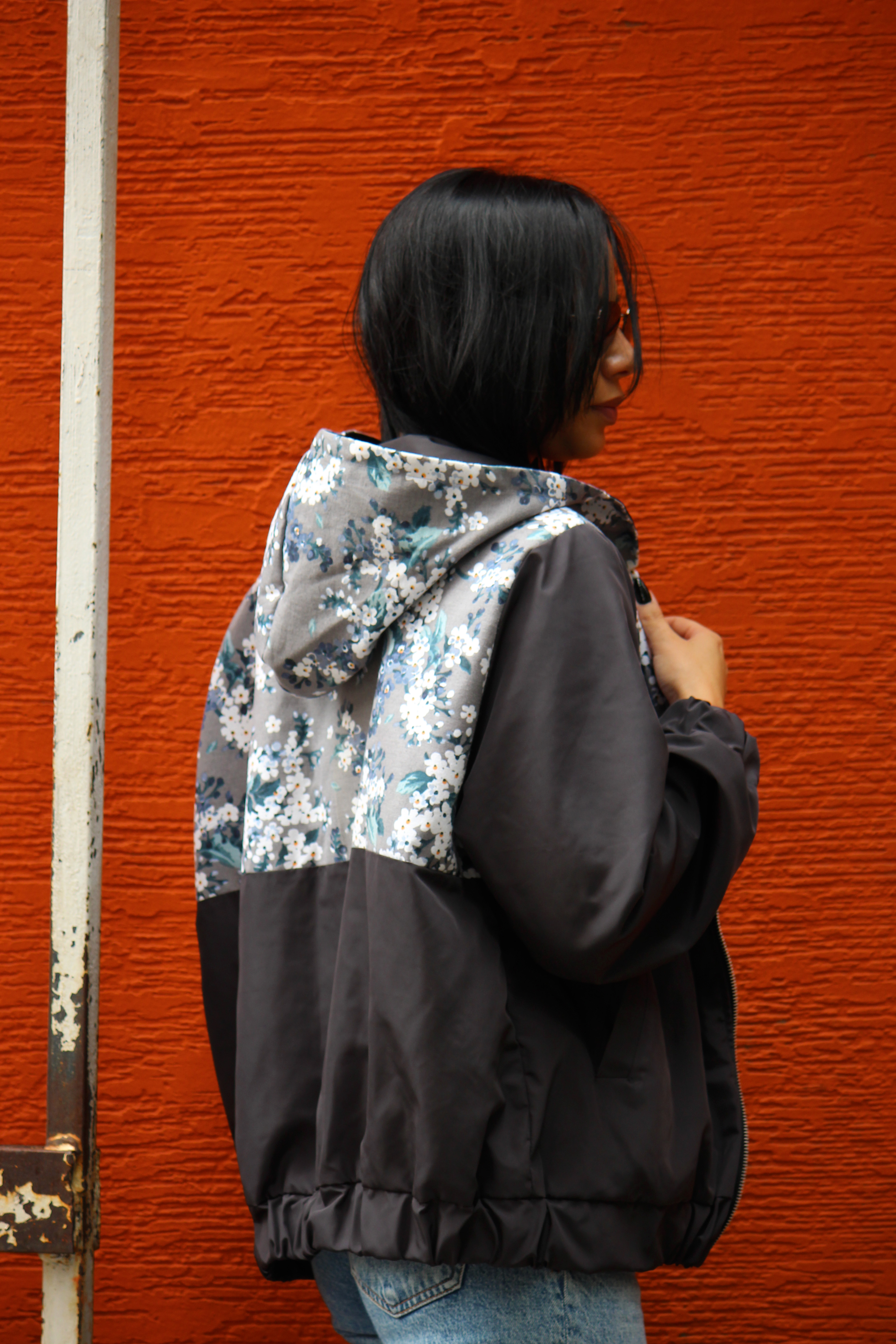 ვარდისფერი საწვიმარი-ქურთუკი ყვავილებით