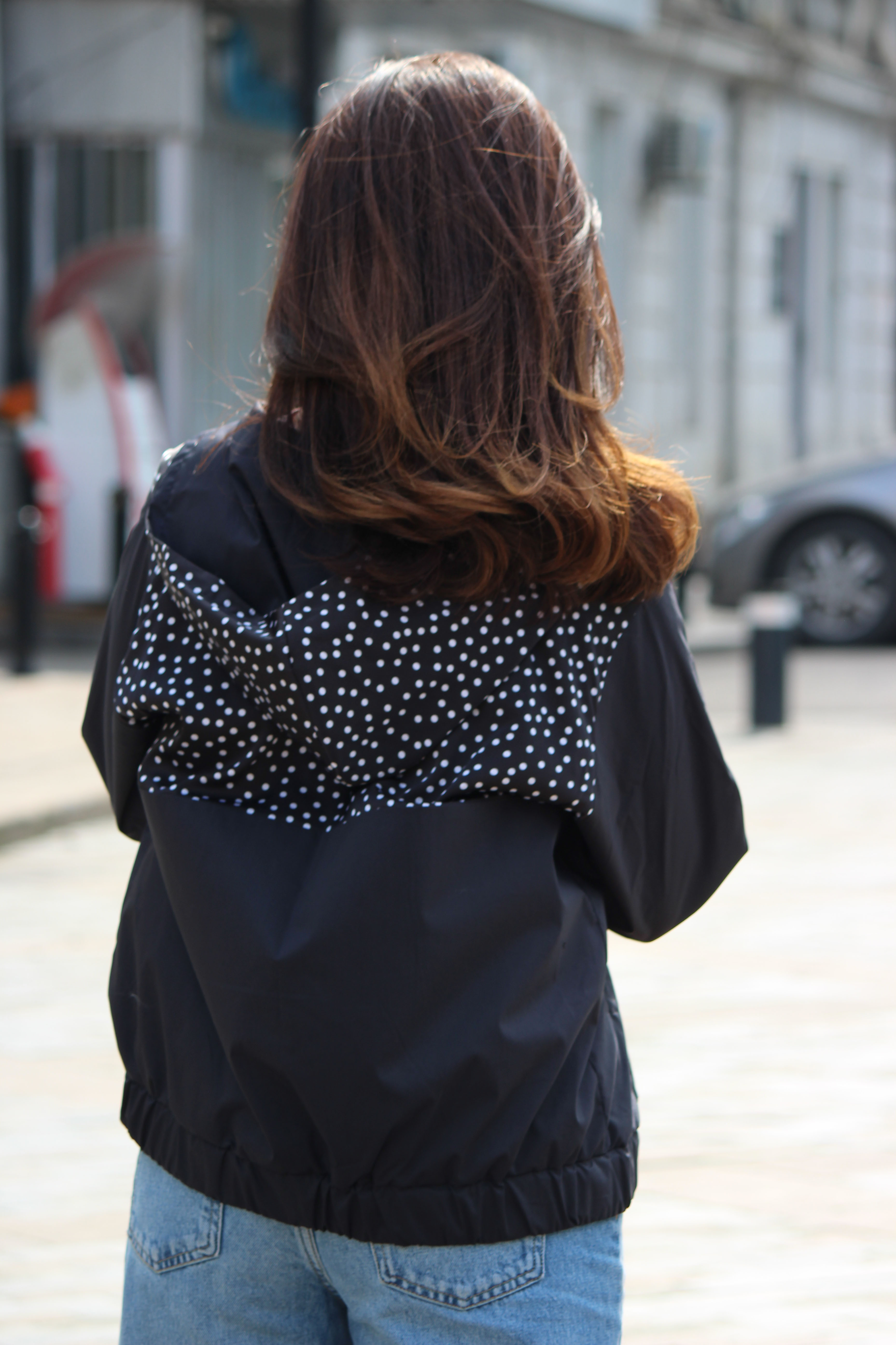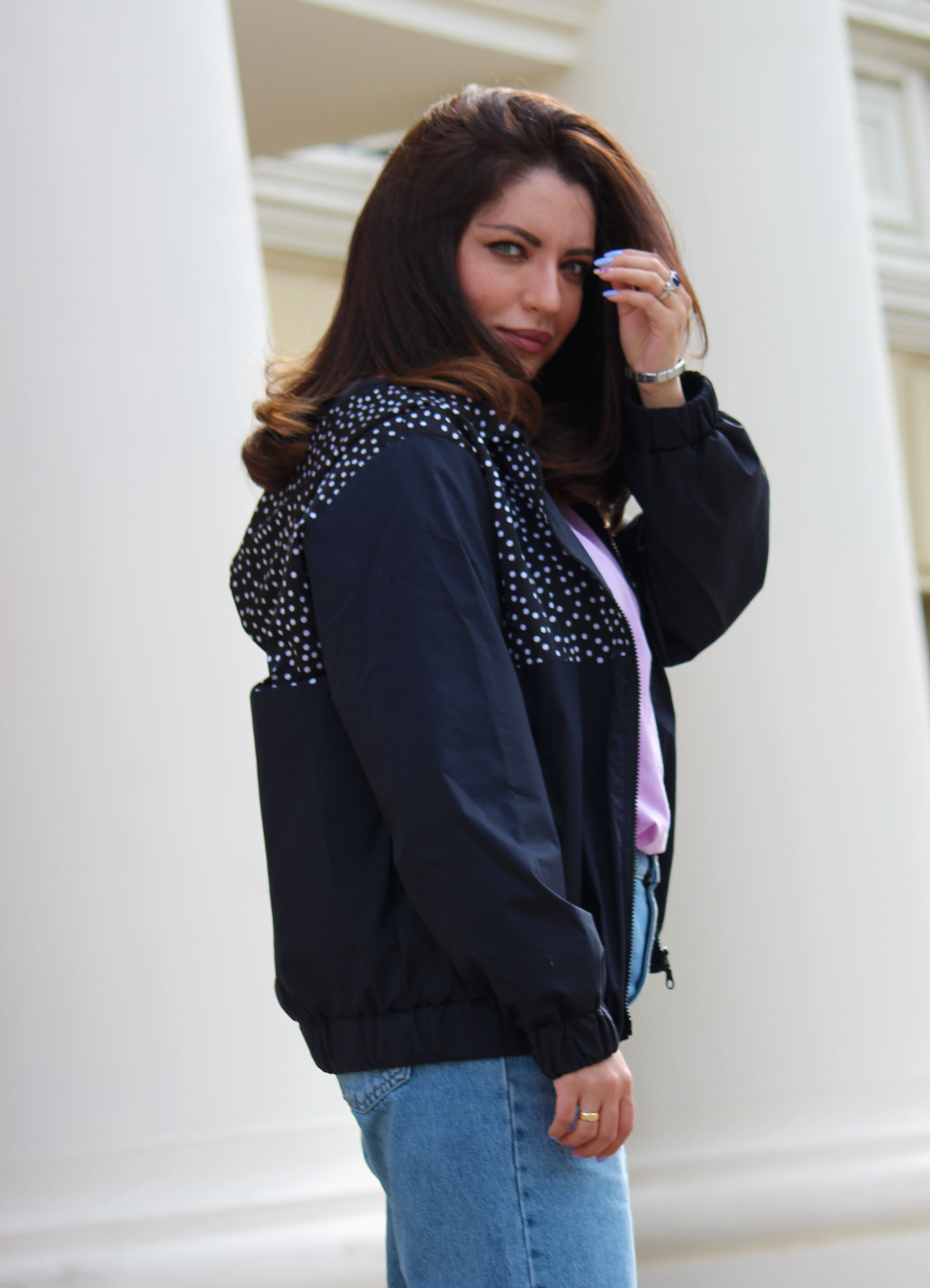 ⬛ მოდელი- ქალის შავი საწვიმარი-ქურთუკი კოპლებიანი დეკორით